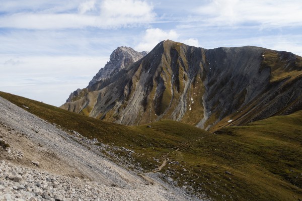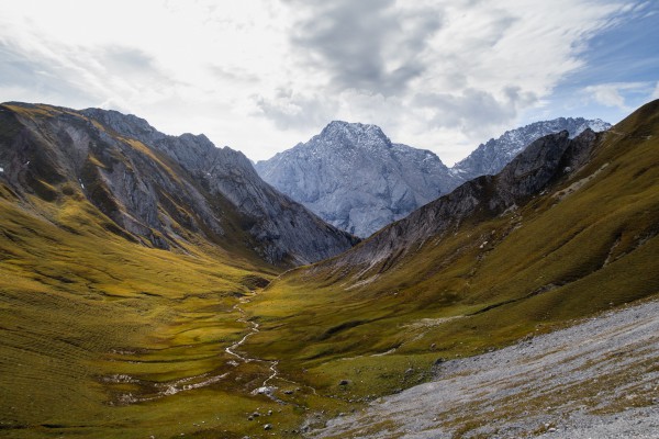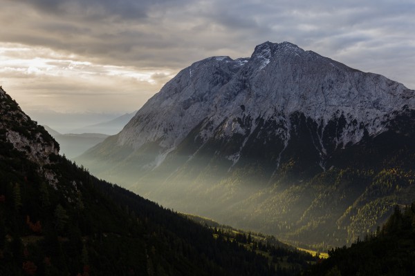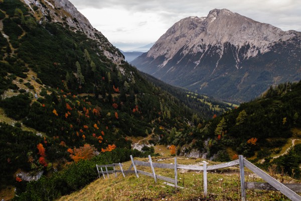 Von der Terrasse der Hütte hat man dann beinahe eine komplette Rundumsicht auf den gesamten Kessel, in dem die Hütte steht. Und wenn morgens die Sonne im Osten aufgeht fallen die ersten Strahlen des Tages vorbei an der Hohen Munde in das Gaistal und färben es in ein warmes Licht. Wenn es dann hell geworden ist und sich die Hirsche von der anstrengenden Nacht erholen, fangen an den Hängen hinter der Hütte die Murmeltiere zu pfeifen an und man kann an den Hängen auch noch den Gämsen zusehen.