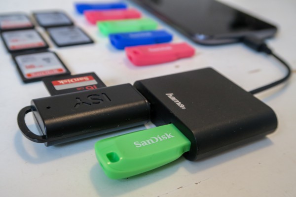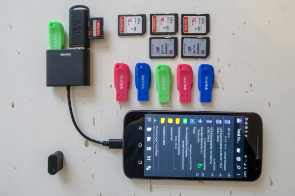 Mit Hilfe des Handys und des OTG-Adapters mache ich dann, regelmäßig abends im Zelt, Kopien. Zum Lesen der SD Karten verwende ich einen USB Reader, der selbst auch nicht größer als ein Stick ist und ungefähr 4,90€ gekostet hat.