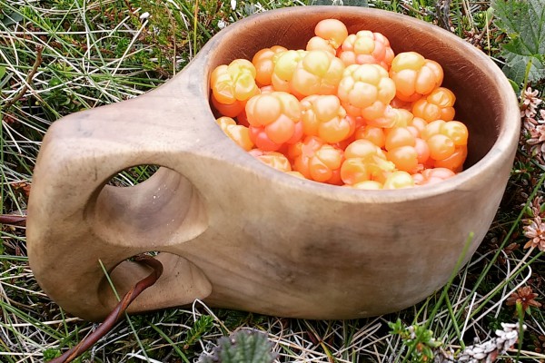 Vorgestern habe ich das erste Mal reife Moltebeeren gefunden und gegessen. Moltebeeren sind etwas sehr typisches für Skandinavien. Man macht Marmelade daraus oder isst sie, zusammen mit Sahne, auf Pfannkuchen oder Waffeln. Im Mai, als ich im Süden loslief, habe ich schon die ersten gesehen, da waren sie aber noch rot und hart. Jetzt bin ich bereits so lange unterwegs, dass sie in der Zwischenzeit groß, orange und reif geworden sind. Sie schmecken ein bisschen wie Aprikosen. Ich hatte noch nie zuvor selbst Moltebeeren gepflückt. Es war das erste Mal und sie schmeckten super!