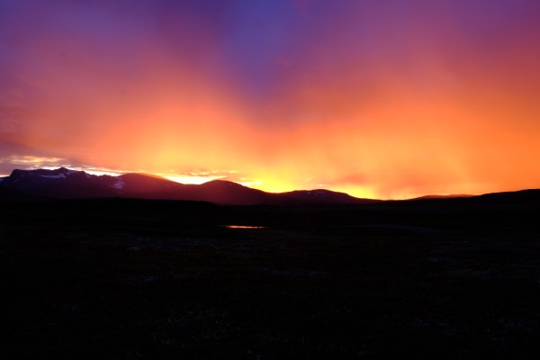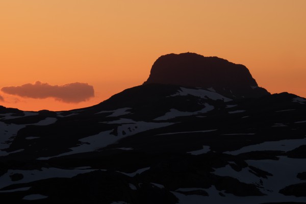 In der Hardangervidda bin ich einmal aus Sehnsucht auf einen hohen Hügel gestiegen, weil ich die Hoffnung hatte, dort Empfang für ein Telefonat mit Kati zu bekommen. Plötzlich flog ein Adler dicht über mir hinweg und drehte dann seine Kreise. Auf einem Stein sitzend konnte ich ihn beobachten und genauer betrachten: Die großen Schwingen und die Zeichnung im Gefieder. Später ging die Sonne rot unter und man sah als Siluette den Harteigen und weit in der Ferne den Gletscher. Ansonsten war es still und niemand sonst war in der Nähe. Ein sehr schöner Moment.