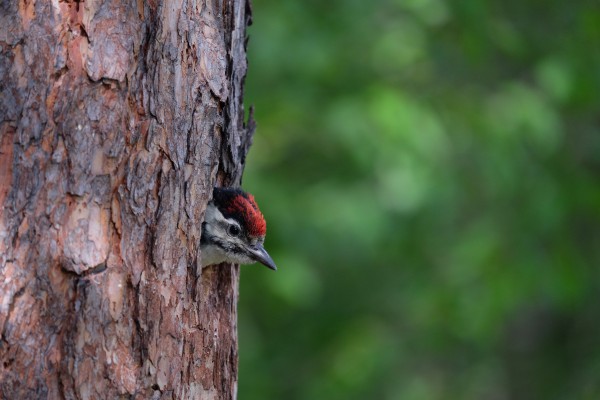 Vor ein paar Wochen, bin ich zum Beispiel an einer Strasse entlang gelaufen, weil der Weg durch die Berge ein riesiger Umweg gewesen wäre. Ich entschied mich für die Abkürzung und nahm einen Tag Asphalt in Kauf. Es war ziemlich warm, windstill und drückend und es fing langsam an mich zu nerven. Als mal wieder eine Stunde rum war und ich meine Pause einlegte, hörte ich im Dickicht auf der gegenüberliegenden Strassenseite ein bekanntes Geräusch. Ich suchte in der Richtung nach einem alten oder toten Baum, fand ihn schnell und auch das kleine Loch im Stamm aus dem das Geräusch kam. Ein Buntspecht hatte dort sein Nest gemeißelt, die Jungen waren bereits geschlüpft und machten mit ihrem Geschrei auf sich aufmerksam. Da die Öffnung im Stamm nur etwa 1 1/5 Meter über dem Boden lag, konnte ich mit der Kamera sehr dicht heran gehen und durch das Loch in das Nest hinein schauen und ein recht gutes Foto machen. Das war ein schöner Moment!