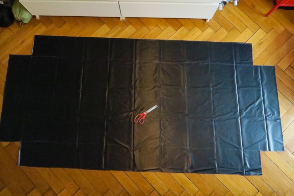 Wie schon in der Vergangenheit habe ich das komplette Material in Webshop von extremtextil.de gefunden. Zwei Tage später war alles da und es konnte losgehen. Das Schnittmuster ist denkbar einfach. Zwei gleich große Halbschalen werden aufeinander gesetzte und teilweise mit einem Reißverschluss, teilweise mit einer Naht verbunden. Anschließend habe ich die Nähte mit einem speziellen Tape abgedichtet.