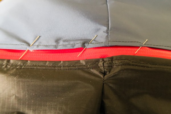 Die Stoffe sollen zwar wasserdicht sein, aber um Stecknadeln komme ich nicht herum.